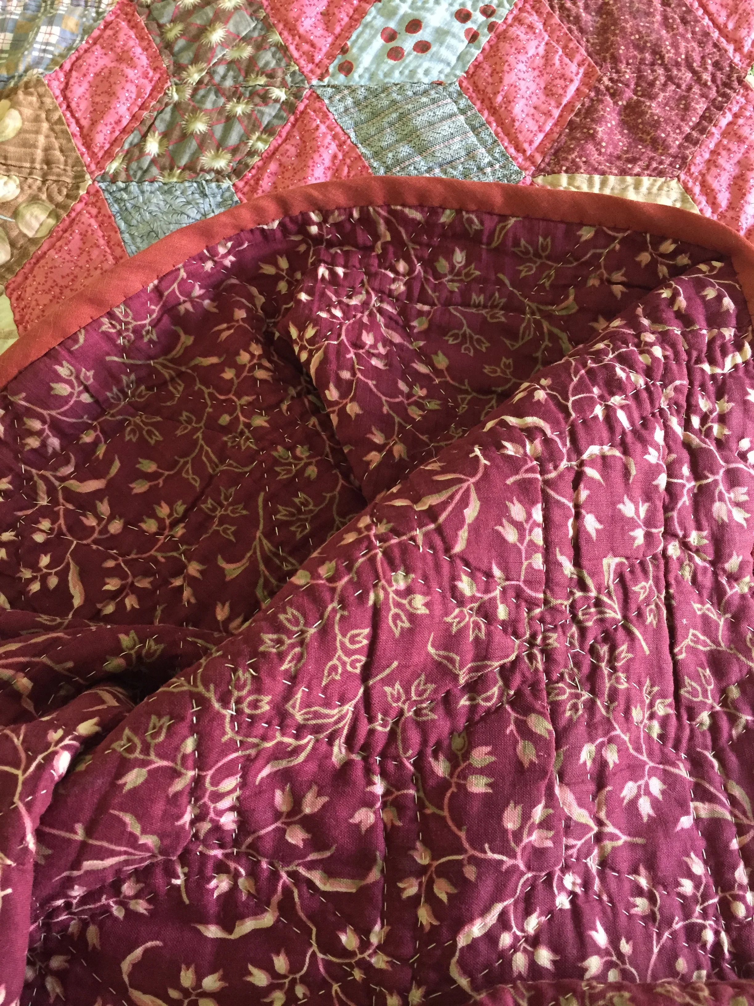 You can clearly see the hand stitches on the back of the quilt. I love to think about who the ladies may have been, sitting together quilting and sharing news and friendship around a table in someones home.