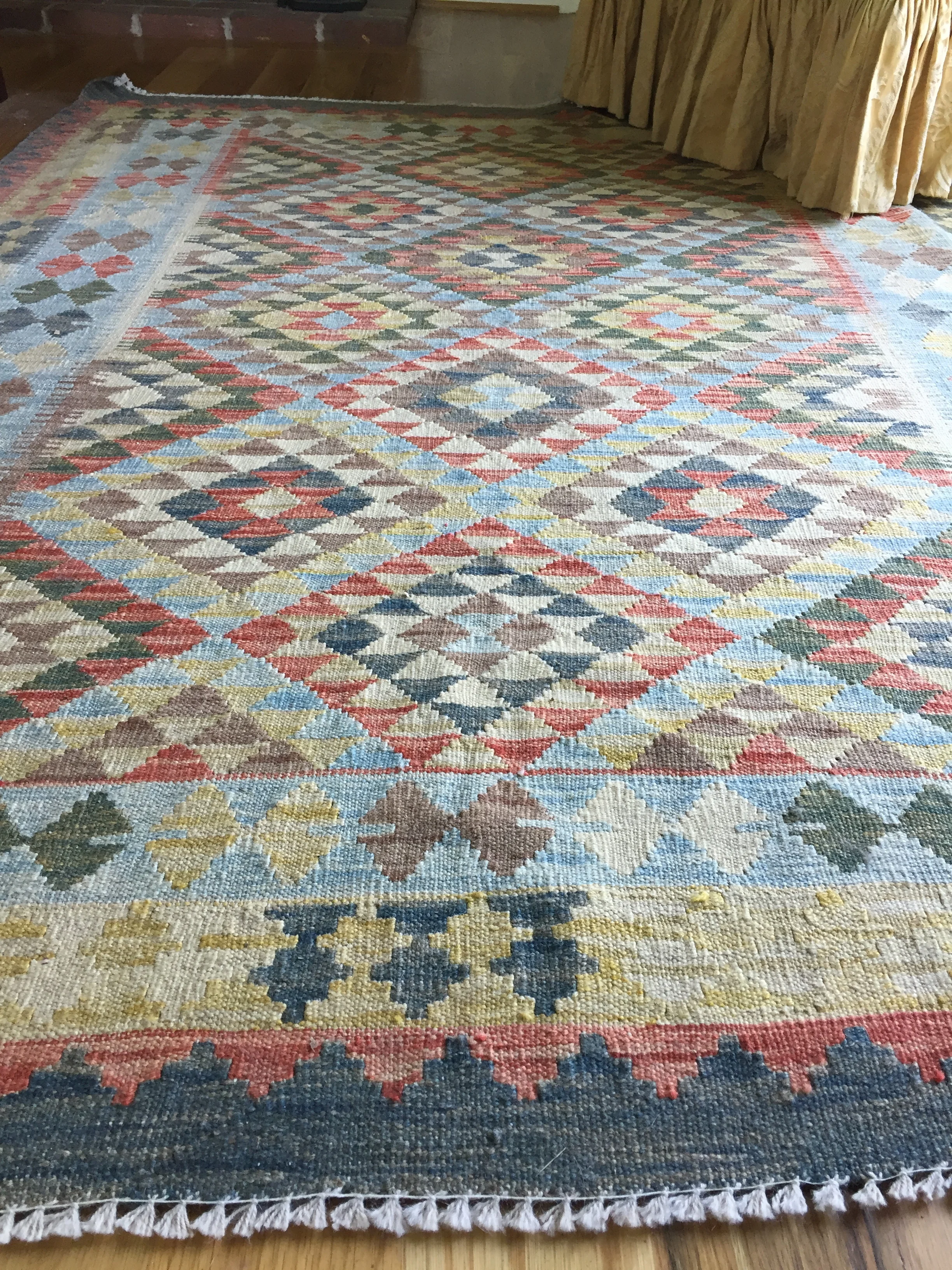 I was ecstatic when I found this dhurrie that happened to work perfectly with both quilts on the bed.